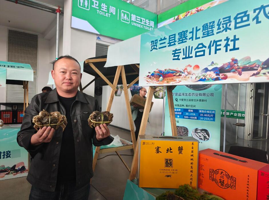 本次活动是贺兰县“百日攻坚”的一项重要内容,设特色农产品展区、休闲美食区、新材料和装备制造展区、新能源汽车展区。特色农产品区展示贺兰县作为“西北适水产业第一县”的丰厚家底,鲟鱼、石斑鱼、斑节虾、锦鲤、黄河鲤鱼等水产品应有尽有。当下时节,最靓的还是螃蟹,个大味美。“现在是吃大闸蟹的最好时节,50元一只,不论公母。”立岗镇养殖户马鸿忠说。休闲美食区,沃尔丰酒庄和原歌酒庄的葡萄酒、百瑞源的枸杞、塞尚乳业的酸奶、厚生记的休闲食品都可以免费品尝,吸引了大量顾客。