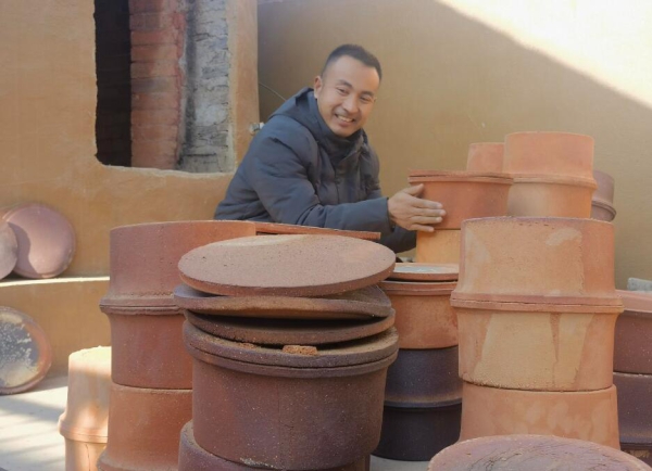 第一次用黄河泥烧的匣钵产品出炉,黎伟高兴地合不拢嘴。