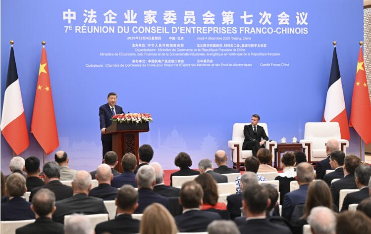 12月4日中午,国家主席习近平在北京同法国总统马克龙共同出席中法企业家委员会第七次会议闭幕式并致辞。