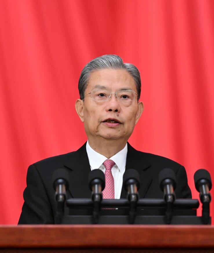3月9日,全国人大常委会委员长赵乐际受全国人大常委会委托,向十四届全国人大四次会议作《全国人民代表大会常务委员会工作报告》。新华社记者 饶爱民 摄