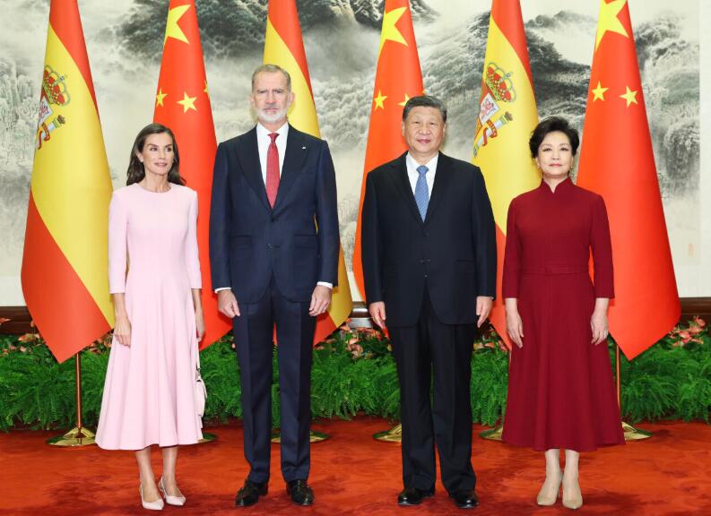 费利佩六世表示,很高兴在西中全面战略伙伴关系20周年之际对中国进行国事访问。西班牙同中国的友好交往源远流长,建交以来,两国始终相互信任、相互尊重,致力于共同发展繁荣。中国的发展成就举世瞩目,令人钦佩,特别是在脱贫和绿色低碳发展方面的成功经验值得借鉴。西班牙政府坚定不移奉行一个中国政策,支持维护国家领土完整,愿同中方推动两国全面战略伙伴关系不断向前发展,为两国人民带来更多福祉,为世界和平稳定作出更大贡献。中国企业投资有力促进了西班牙经济发展和绿色转型。西方愿同中方保持密切交往,把握中方实施“十五五”规划带来的重要机遇,加强经贸、工业、科技、绿色能源等领域合作。感谢中方对西班牙实施免签政策,愿密切文化、语言、旅游领域交流,增进人民友好。历史只能向前,不能倒退。西中两国在很多国际问题上理念高度一致,都支持多边主义,支持通过对话协商解决争端。西班牙高度赞赏习近平主席提出的四大全球倡议,愿同中方共同应对国际形势中的不确定性,维护国际贸易秩序,促进全球经济稳定发展。